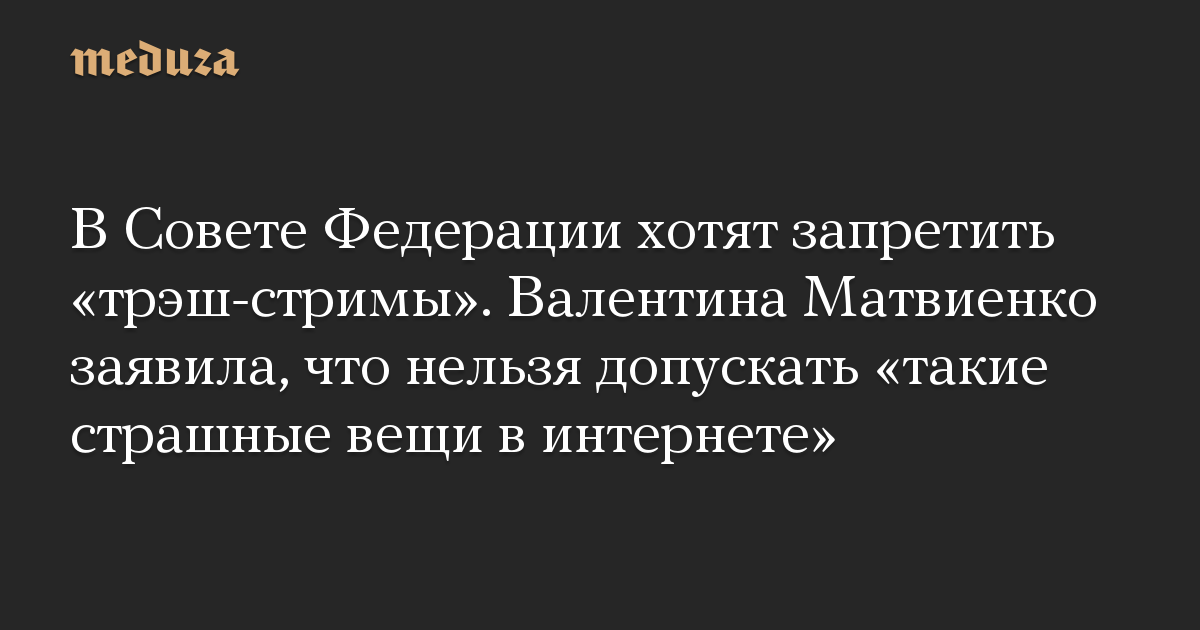 В Совете Федерации хотят запретить «трэш-стримы». Валентина Матвиенко заявила, что нельзя допускать «такие страшные вещи в интернете»