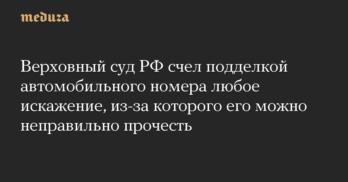Верховный суд РФ счел подделкой автомобильного номера любое искажение, из-за которого его можно неправильно прочесть