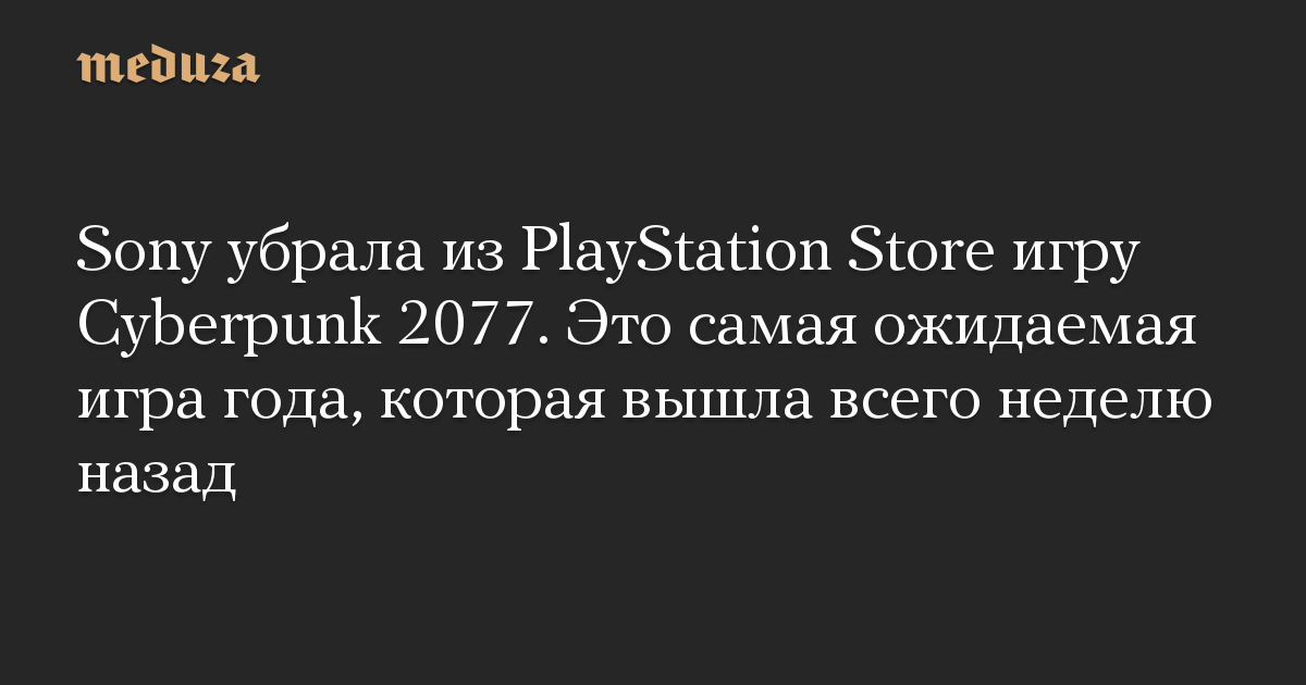 Компания Sony Interactive Entertainment (SIE) решила отозвать недавно вышедшую игру Cyberpunk 2077 из магазина видеоигр PlayStation Store «до дальнейшего уведомления». Об этом сообщается на сайте PlayStation.