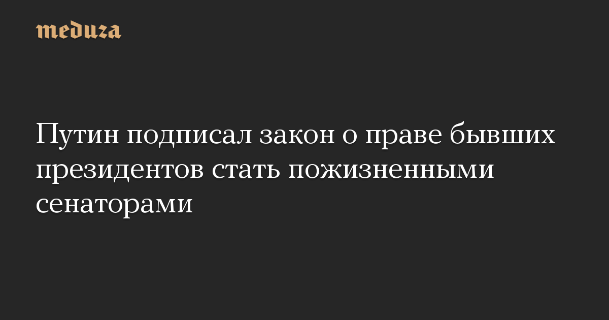 Президент РФ Владимир Путин подписал закон, дающий возможность бывшим президентам стать пожизненными сенаторами.