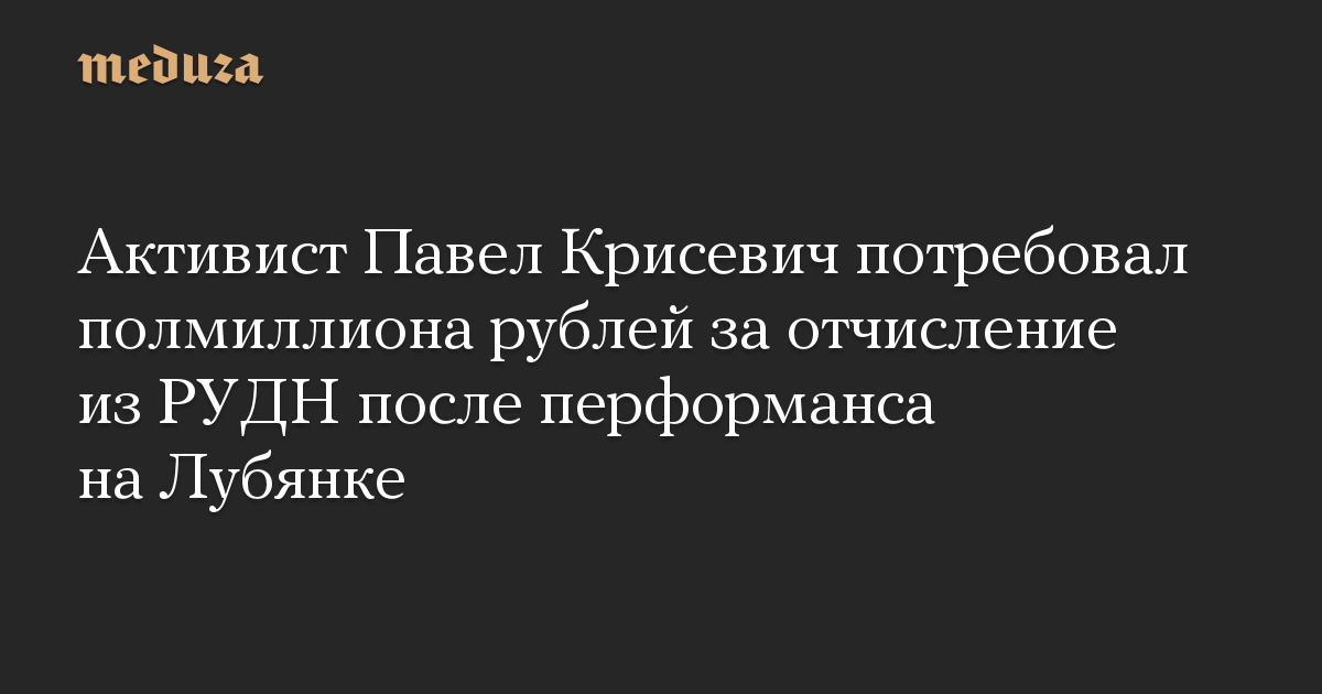 Активист Павел Крисевич потребовал полмиллиона рублей за отчисление из РУДН после перформанса на Лубянке