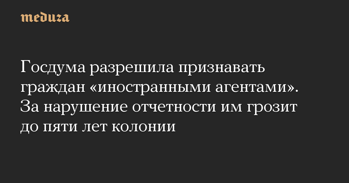 Госдума разрешила признавать граждан «иностранными агентами». За нарушение отчетности им грозит до пяти лет колонии