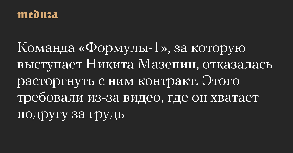 Команда «Формулы-1», за которую выступает Никита Мазепин, отказалась расторгнуть с ним контракт. Этого требовали из-за видео, где он хватает подругу за грудь