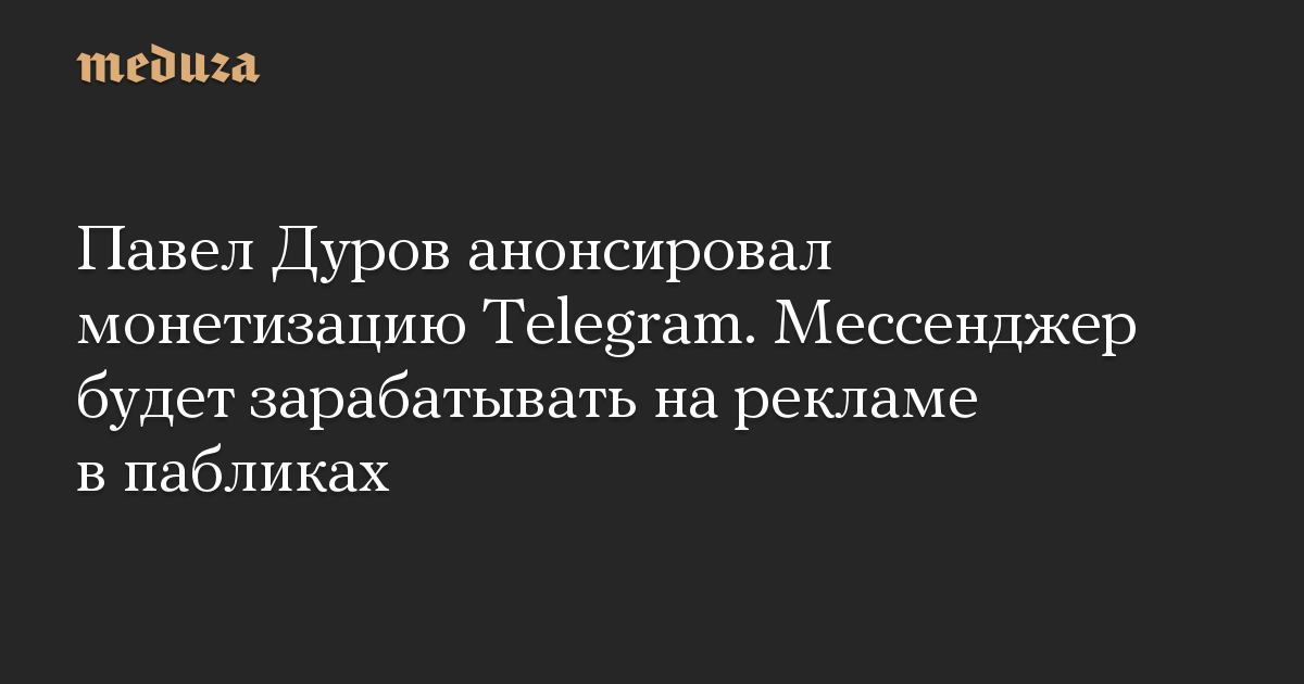 Павел Дуров анонсировал монетизацию Telegram. Мессенджер будет зарабатывать на рекламе в пабликах