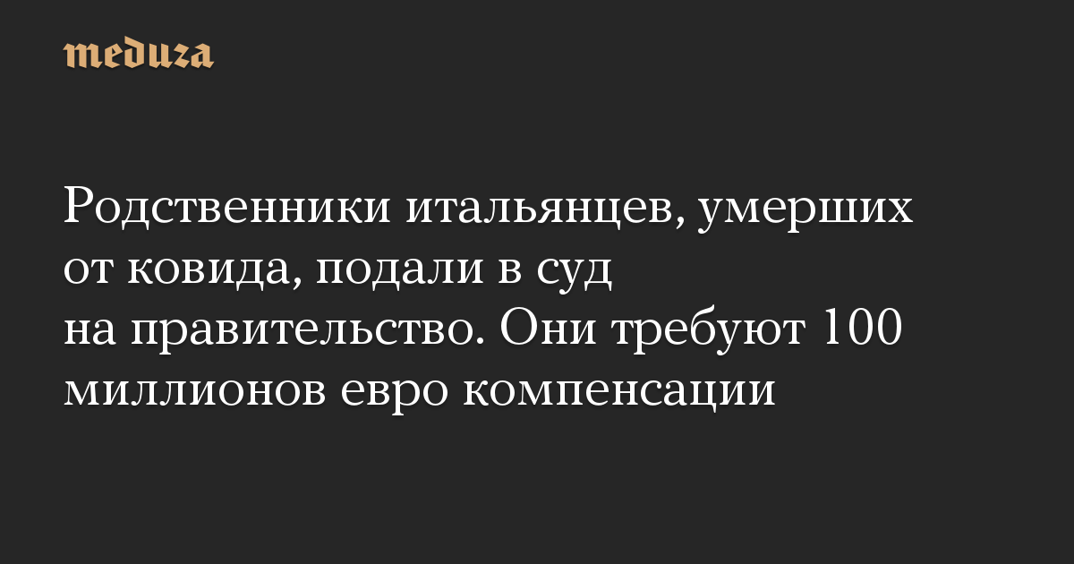 Родственники итальянцев, умерших от ковида, подали в суд на правительство. Они требуют 100 миллионов евро компенсации