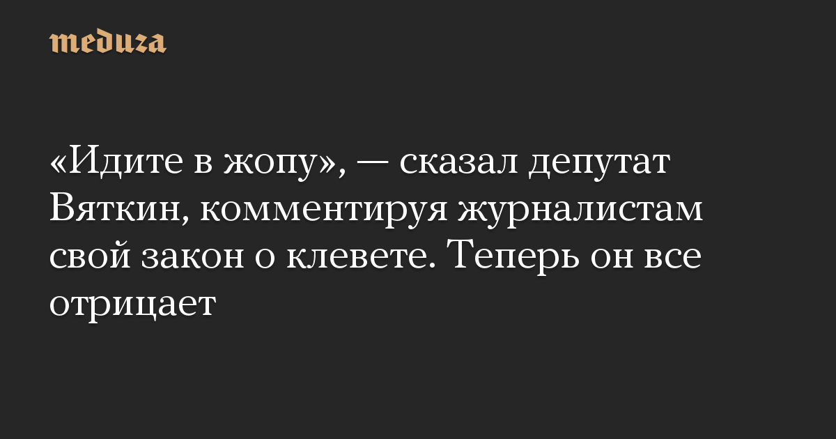 «Идите в жопу», — сказал депутат Вяткин, комментируя журналистам свой закон о клевете. Теперь он все отрицает