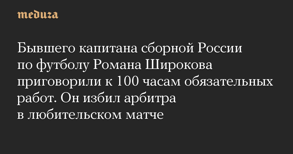 Бывшего капитана сборной России по футболу Романа Широкова приговорили к 100 часам обязательных работ. Он избил арбитра в любительском матче