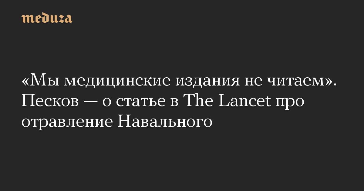 «Мы медицинские издания не читаем». Песков — о статье в The Lancet про отравление Навального