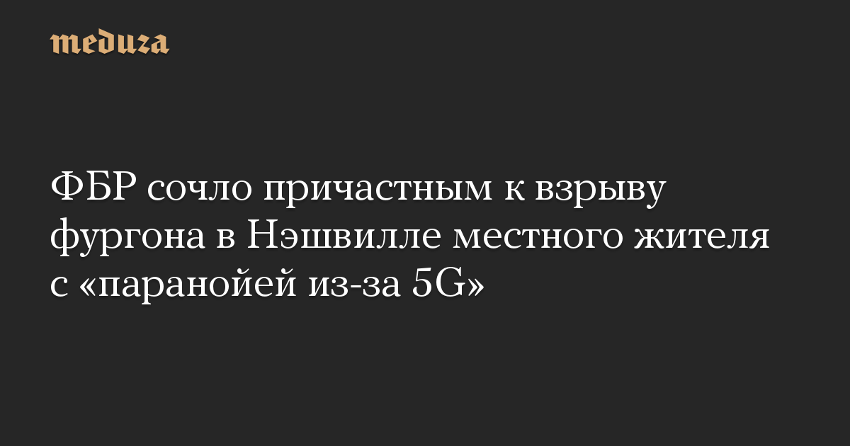 ФБР сочло причастным к взрыву фургона в Нэшвилле местного жителя с «паранойей из-за 5G»