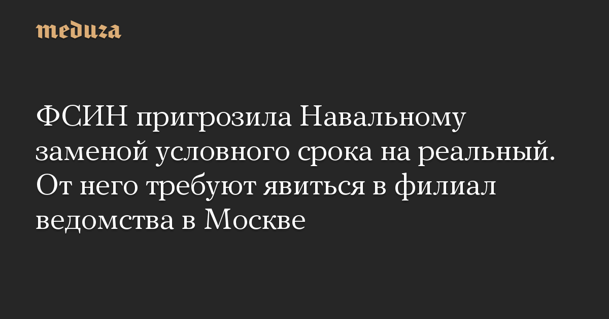 ФСИН пригрозила Навальному заменой условного срока на реальный. От него требуют явиться в филиал ведомства в Москве