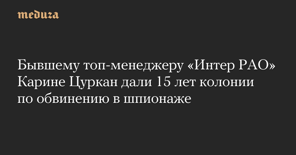 Бывшему топ-менеджеру «Интер РАО» Карине Цуркан дали 15 лет колонии по обвинению в шпионаже