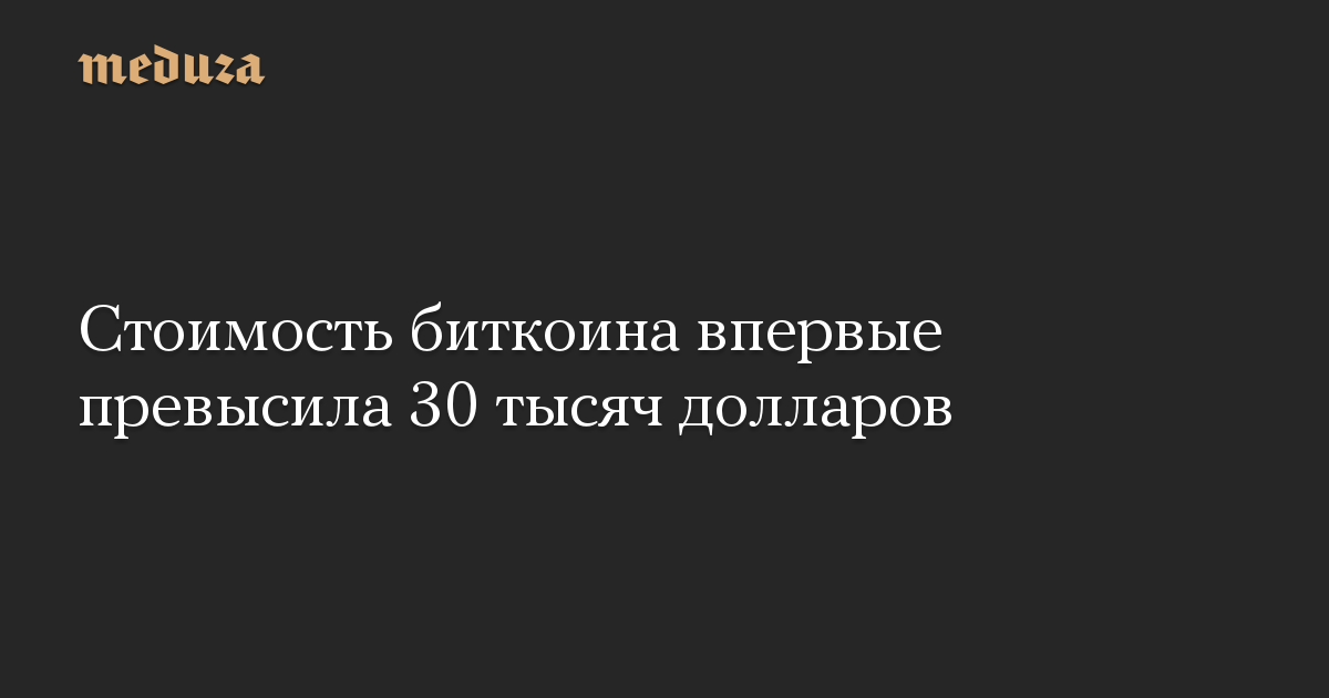 Стоимость биткоина впервые превысила 30 тысяч долларов