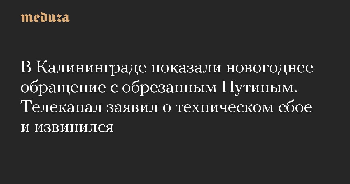 В Калининграде показали новогоднее обращение с обрезанным Путиным. Телеканал заявил о техническом сбое и извинился