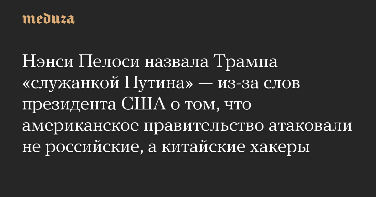 Нэнси Пелоси назвала Трампа «служанкой Путина» — из-за слов президента США о том, что американское правительство атаковали не российские, а китайские хакеры