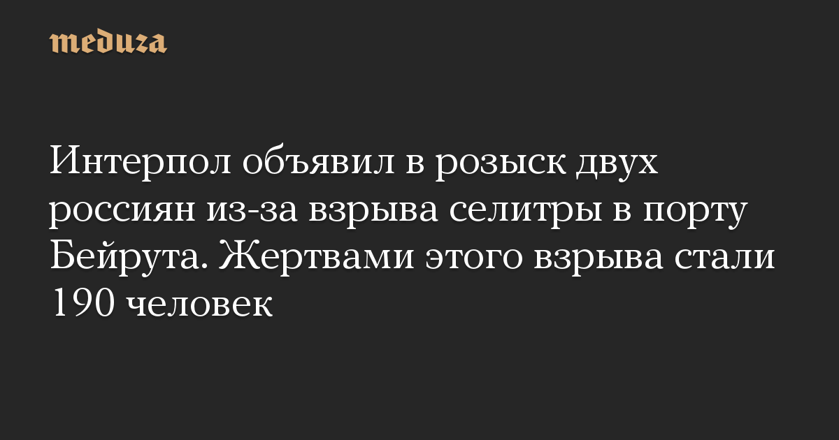 Интерпол объявил в розыск двух россиян из-за взрыва селитры в порту Бейрута. Жертвами этого взрыва стали 190 человек