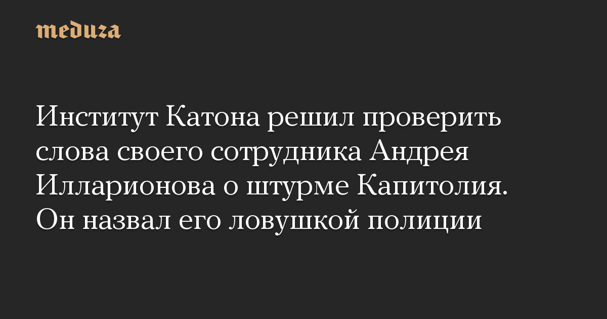 Институт Катона решил проверить слова своего сотрудника Андрея Илларионова о штурме Капитолия. Он назвал его ловушкой полиции