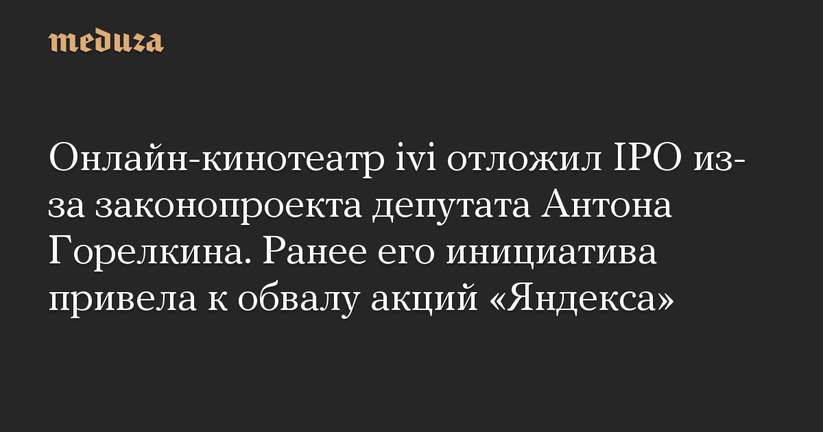 Онлайн-кинотеатр ivi отложил IPO из-за законопроекта депутата Антона Горелкина. Ранее его инициатива привела к обвалу акций «Яндекса»
