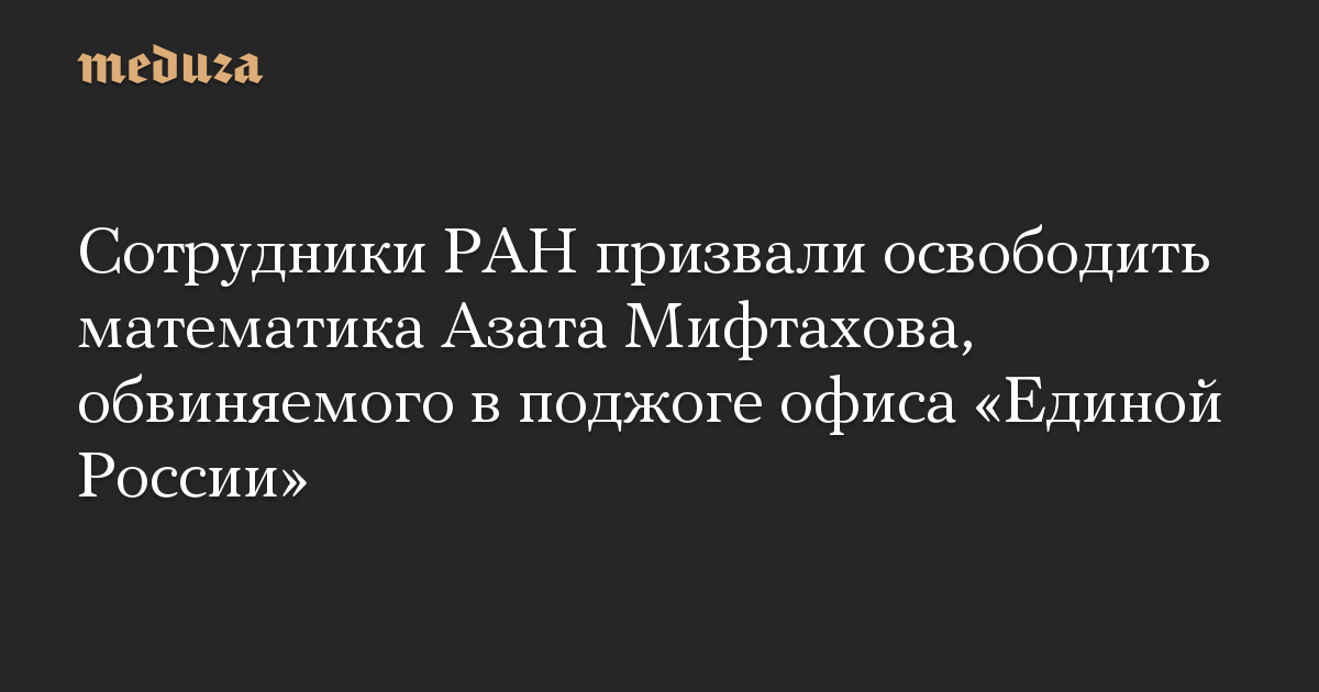 Сотрудники РАН призвали освободить математика Азата Мифтахова, обвиняемого в поджоге офиса «Единой России»