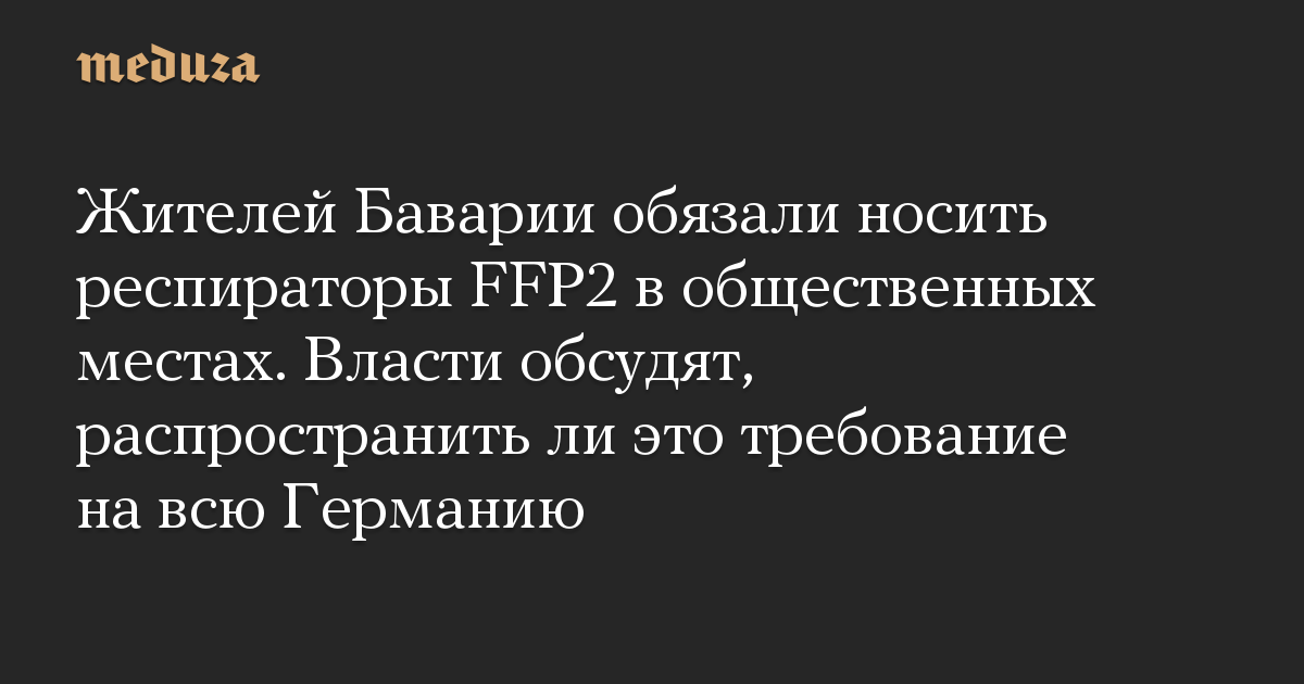 Жителей Баварии обязали носить респираторы FFP2 в общественных местах. Власти обсудят, распространить ли это требование на всю Германию