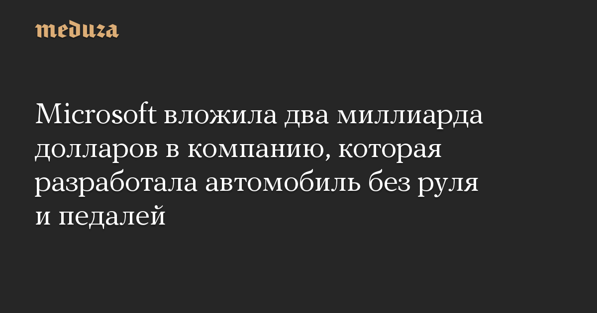 Microsoft вложила два миллиарда долларов в компанию, которая разработала автомобиль без руля и педалей