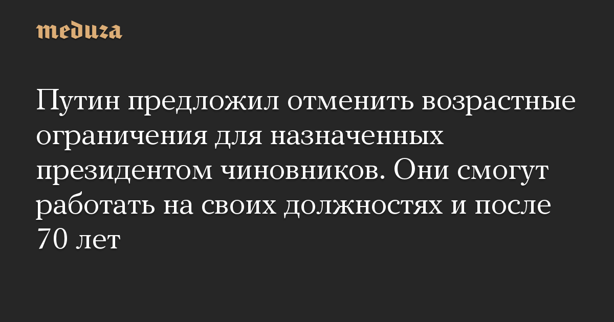 Путин предложил отменить возрастные ограничения для назначенных президентом чиновников. Они смогут работать на своих должностях и после 70 лет