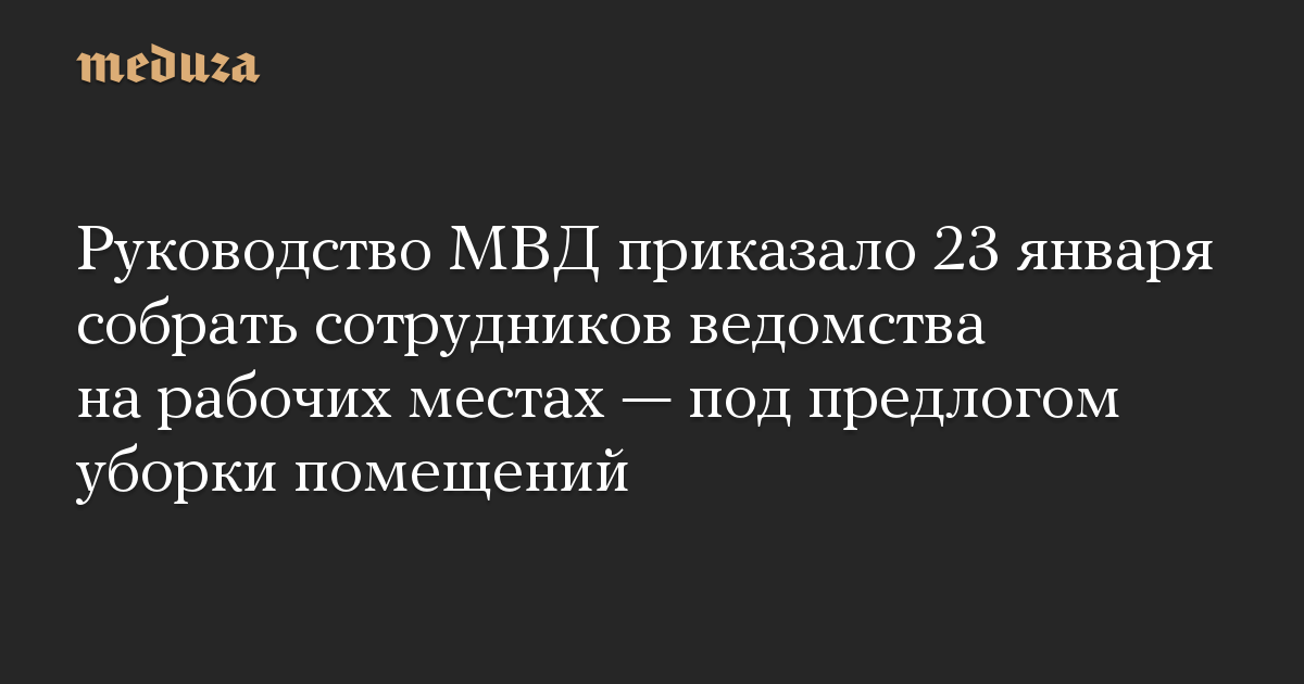 Руководство МВД приказало 23 января собрать сотрудников ведомства на рабочих местах — под предлогом уборки помещений