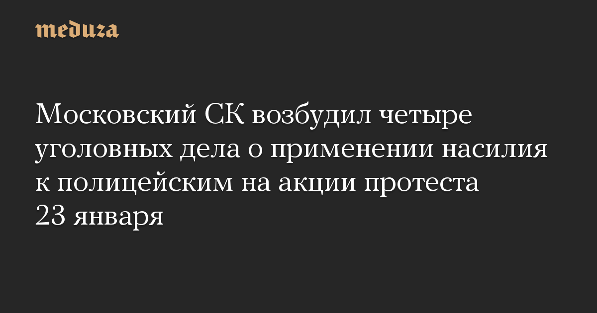 Главное следственное управление СК России по Москве возбудило четыре уголовных дела по статье о применении насилия к полицейским (статья 318 УК РФ) на акции протеста 23 января.