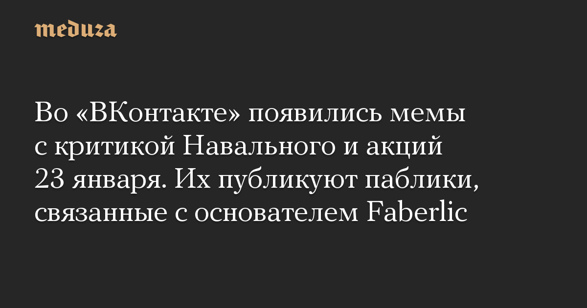 Во «ВКонтакте» появились мемы с критикой Навального и акций 23 января. Их публикуют паблики, связанные с основателем Faberlic