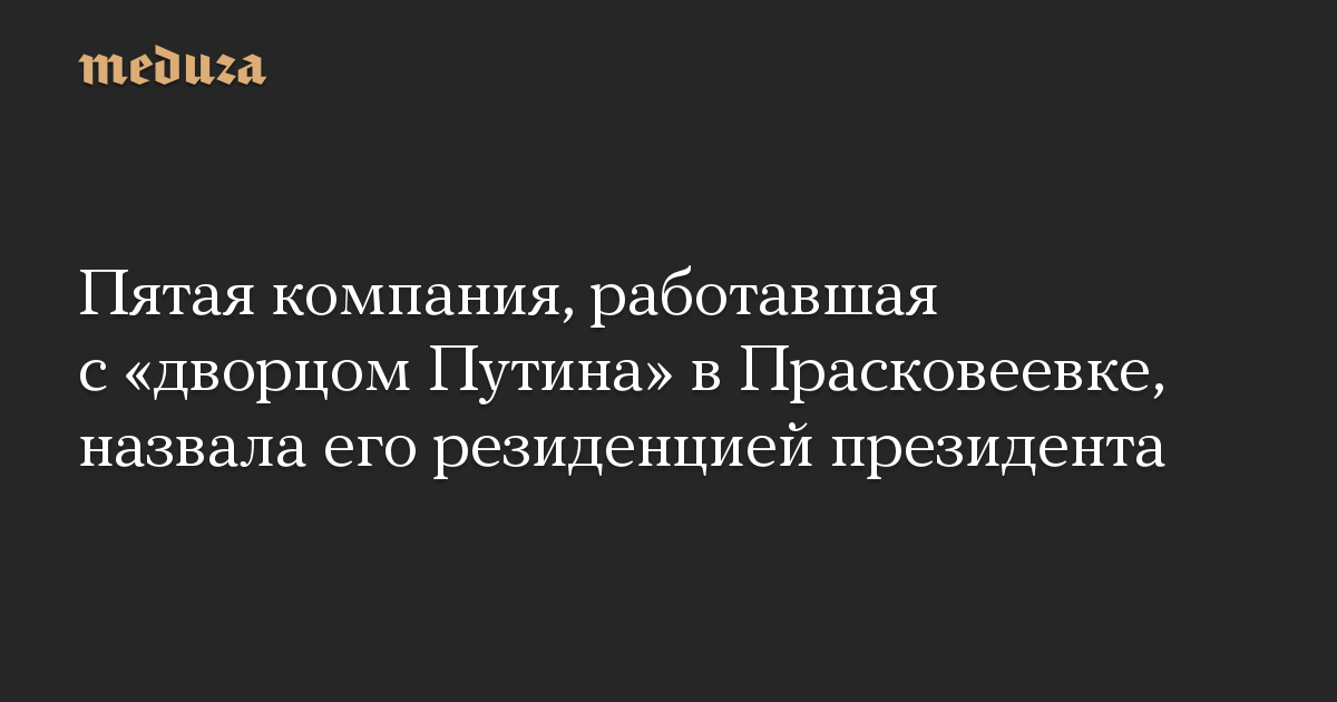 Пятая компания, работавшая с «дворцом Путина» в Прасковеевке, назвала его резиденцией президента