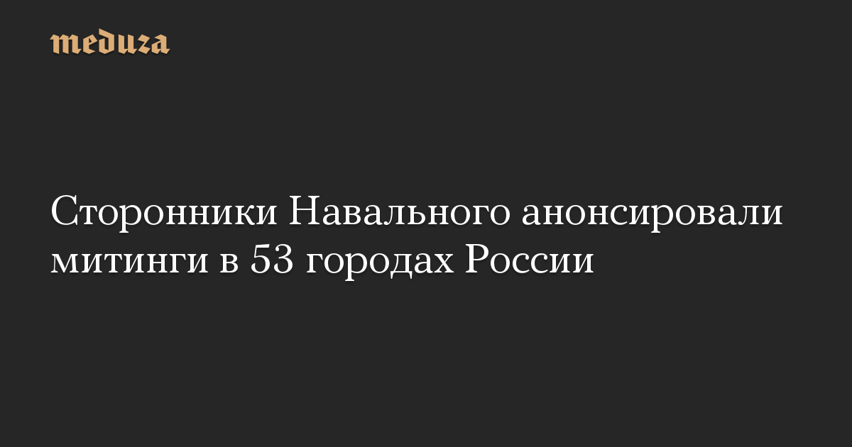 Сторонники политика Алексея Навального 31 января намерены провести митинги в 53 городах России. Акции анонсированы в телеграм-канале «Команда Навального».