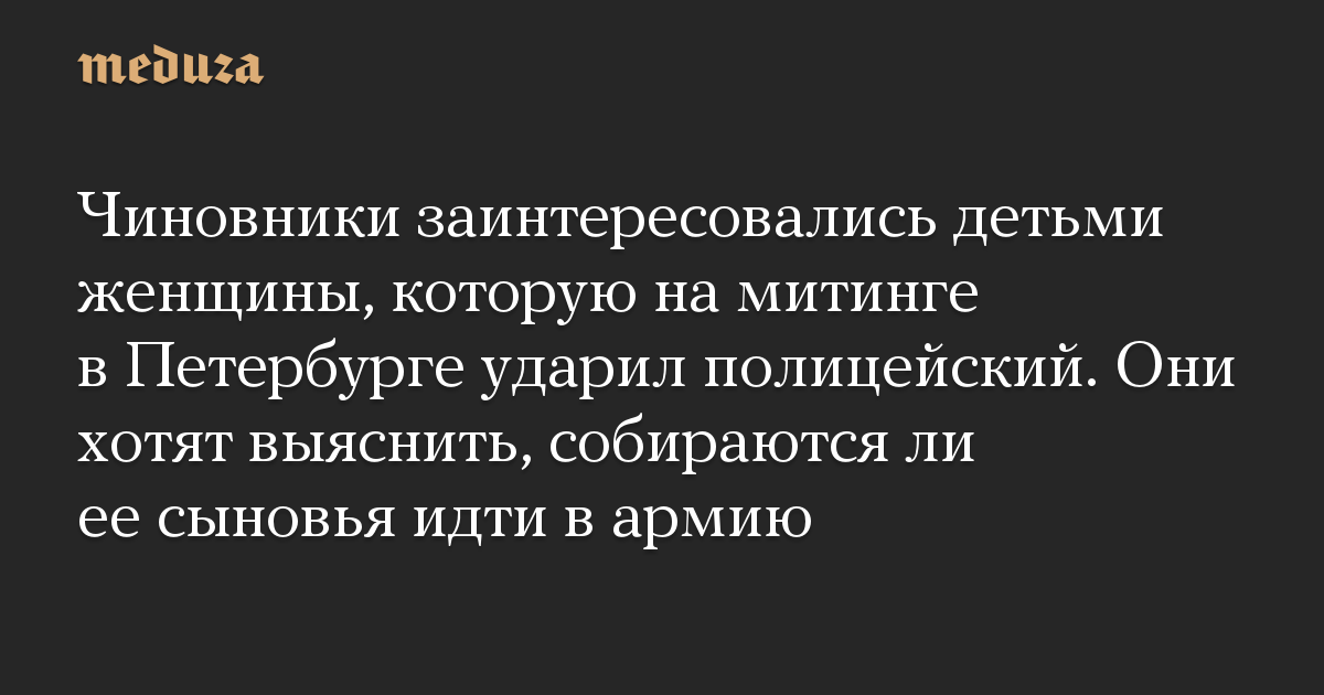 Чиновники заинтересовались детьми женщины, которую на митинге в Петербурге ударил полицейский. Они хотят выяснить, собираются ли ее сыновья идти в армию