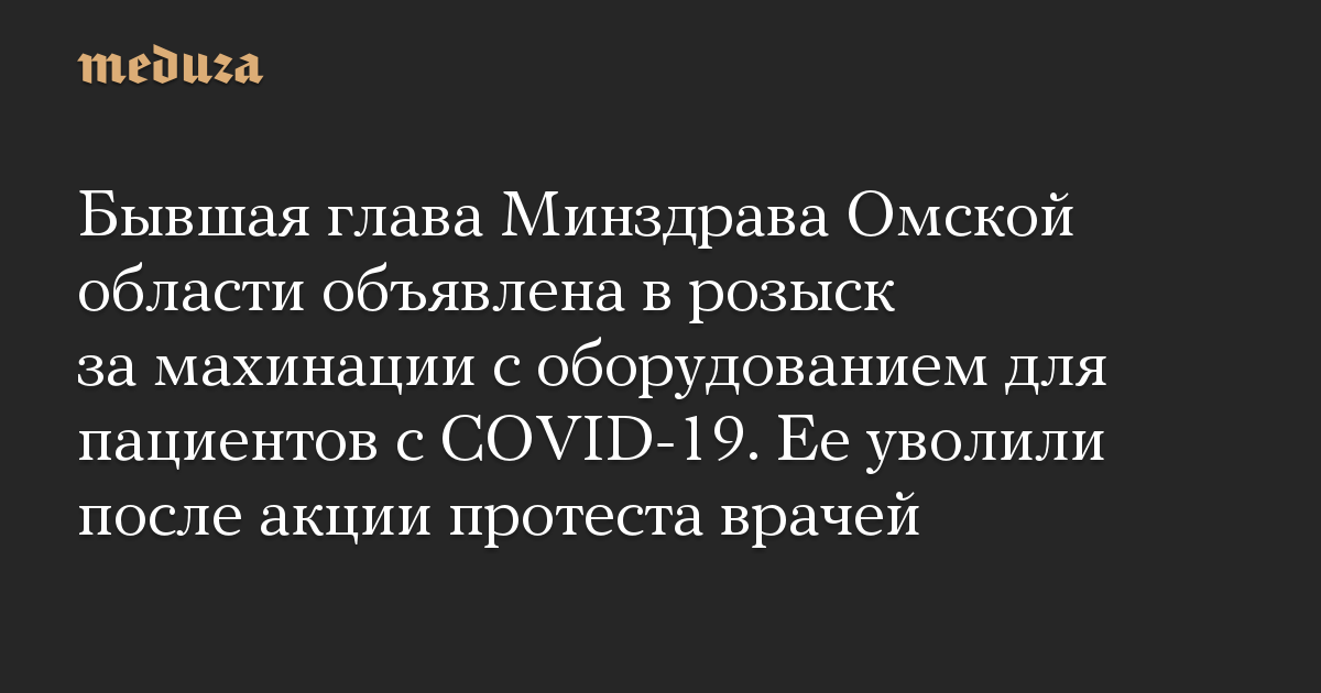 Бывшая глава Минздрава Омской области объявлена в розыск за махинации с оборудованием для пациентов с COVID-19. Ее уволили после акции протеста врачей