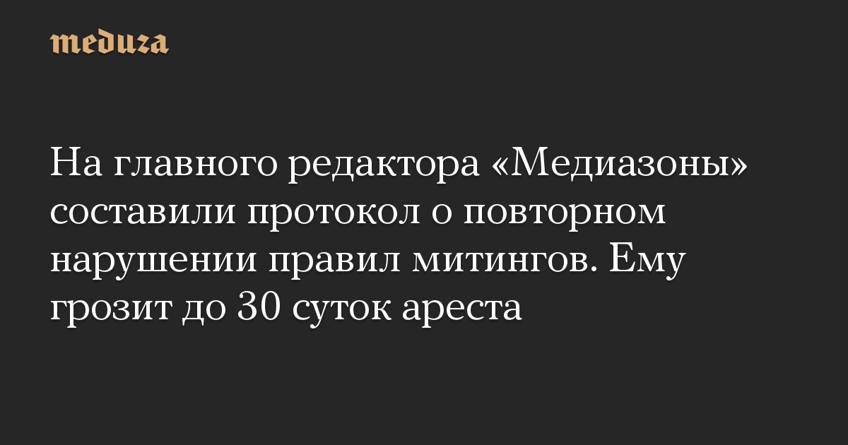 На главного редактора «Медиазоны» составили протокол о повторном нарушении правил митингов. Ему грозит до 30 суток ареста