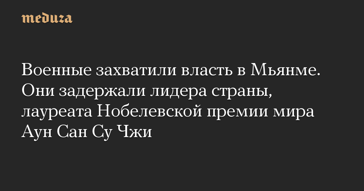 Военные в Мьянме устроили переворот, отстранив от власти правительство лауреата Нобелевской премии мира и лидера правящей партии «Национальная лига за демократию» (НЛД) Аун Сан Су Чжи, сообщает Reuters.