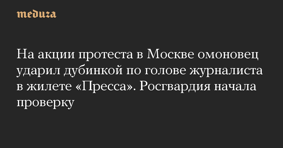 На акции протеста в Москве омоновец ударил дубинкой по голове журналиста в жилете «Пресса». Росгвардия начала проверку