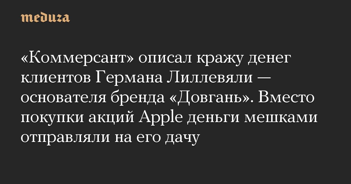 «Коммерсант» описал кражу денег клиентов Германа Лиллевяли — основателя бренда «Довгань». Вместо покупки акций Apple деньги мешками отправляли на его дачу