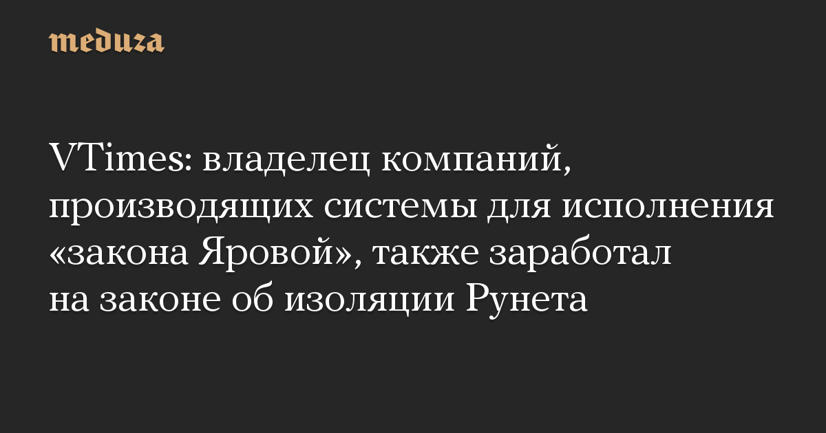 VTimes: владелец компаний, производящих системы для исполнения «закона Яровой», также заработал на законе об изоляции Рунета