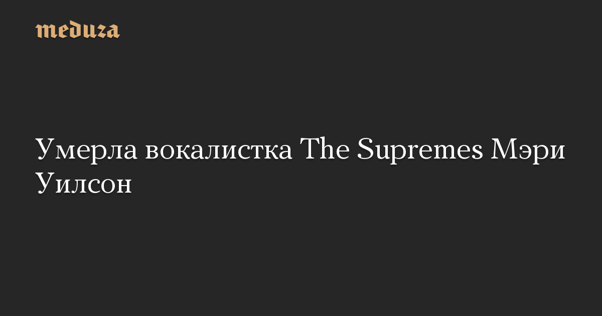 Вокалистка и соосновательница американской поп-группы The Supremes Мэри Уилсон умерла на 77-м году жизни в своем доме в Лас-Вегасе, сообщает Associated Press.