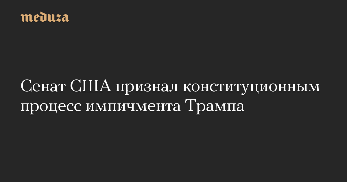 Сенат США проголосовал за то, что процедура импичмента в отношении бывшего президента Дональда Трампа не противоречит американской конституции. Об этом сообщает CNN.