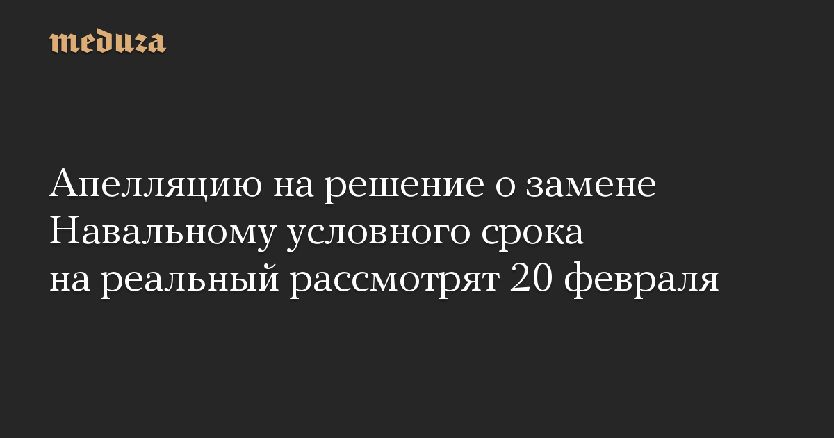 Апелляцию на решение о замене Навальному условного срока на реальный рассмотрят 20 февраля