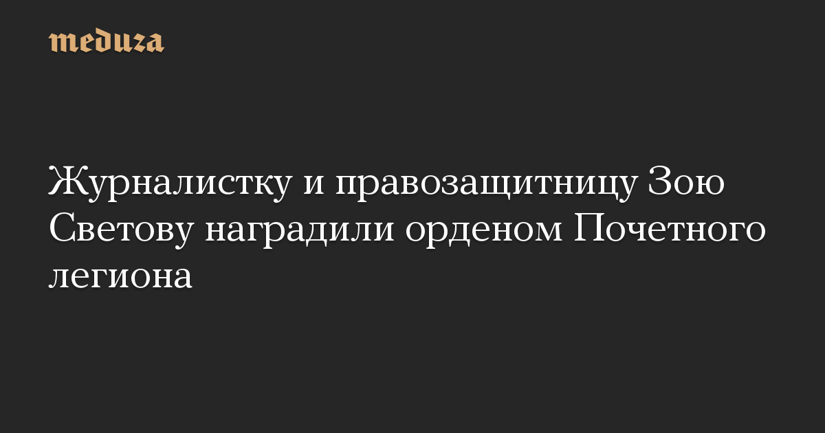 Журналистку и правозащитницу Зою Светову наградили орденом Почетного легиона. Об этом она сама написала в фейсбуке.