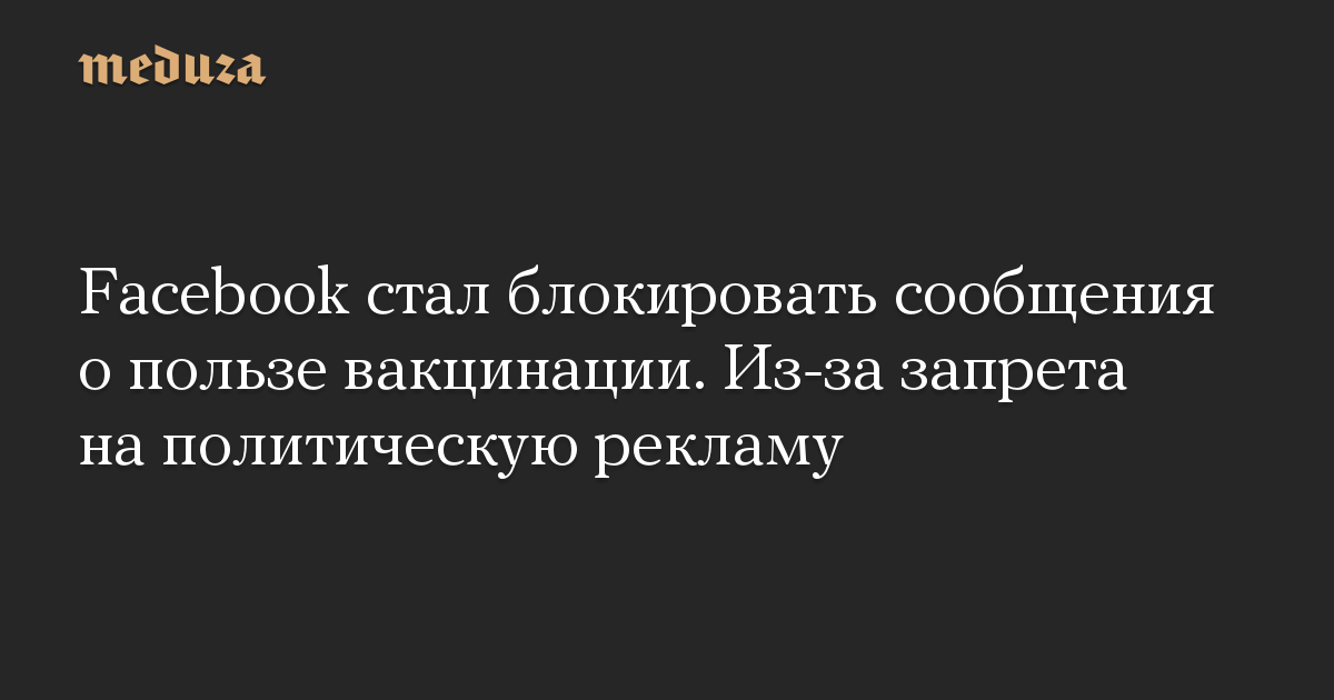 Facebook стал блокировать сообщения о пользе вакцинации. Из-за запрета на политическую рекламу