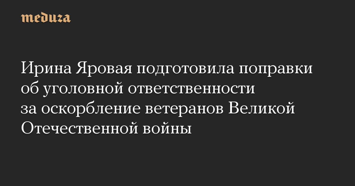 Ирина Яровая подготовила поправки об уголовной ответственности за оскорбление ветеранов Великой Отечественной войны