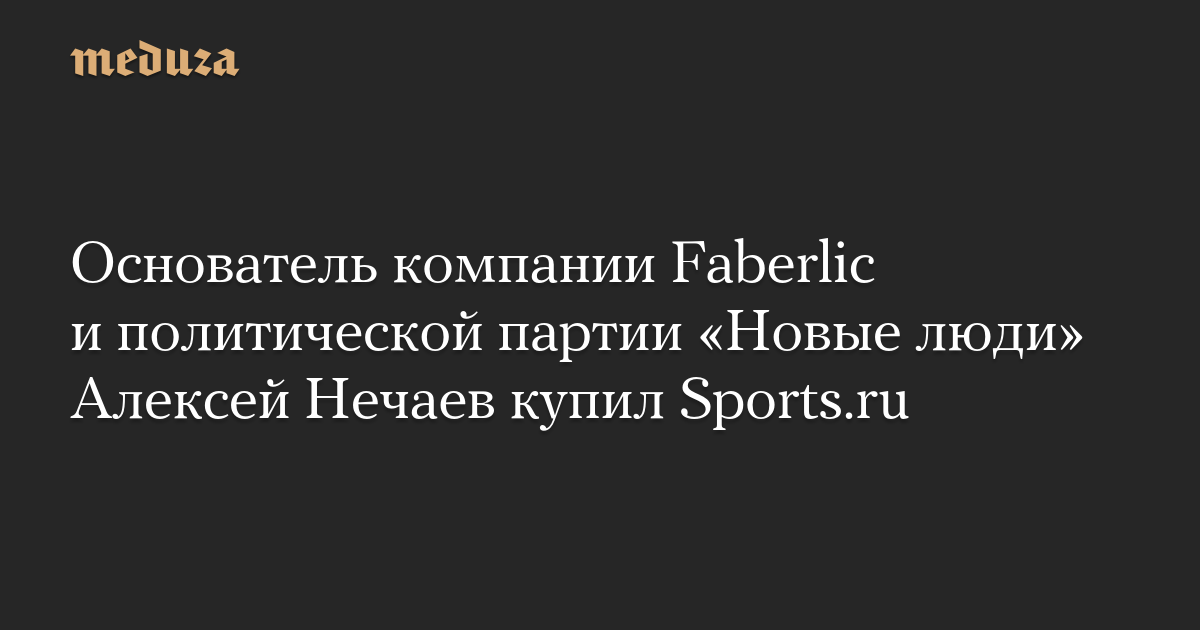 Основатель компании Faberlic и политической партии «Новые люди» Алексей Нечаев купил Sports.ru