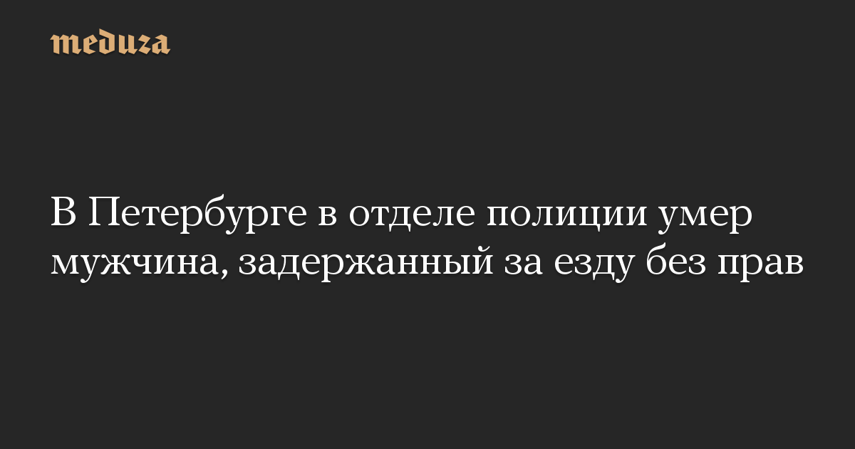 МВД проводит проверку по факту смерти в отделении полиции Санкт-Петербурга мужчины, задержанного за управление автомобилем без водительского удостоверения.