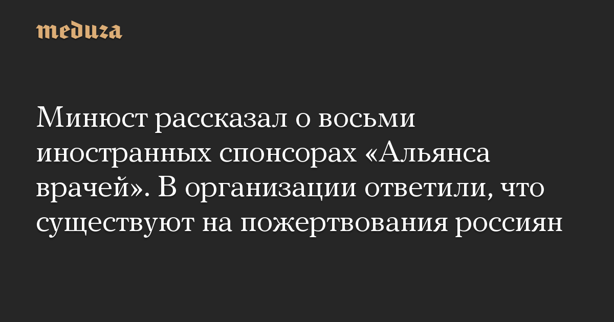 Минюст рассказал о восьми иностранных спонсорах «Альянса врачей». В организации ответили, что существуют на пожертвования россиян