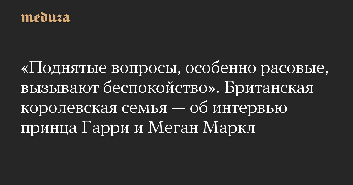 «Поднятые вопросы, особенно расовые, вызывают беспокойство». Британская королевская семья — об интервью принца Гарри и Меган Маркл