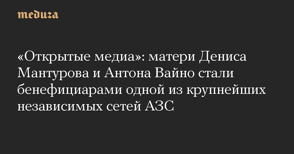 «Открытые медиа»: матери Дениса Мантурова и Антона Вайно стали бенефициарами одной из крупнейших независимых сетей АЗС