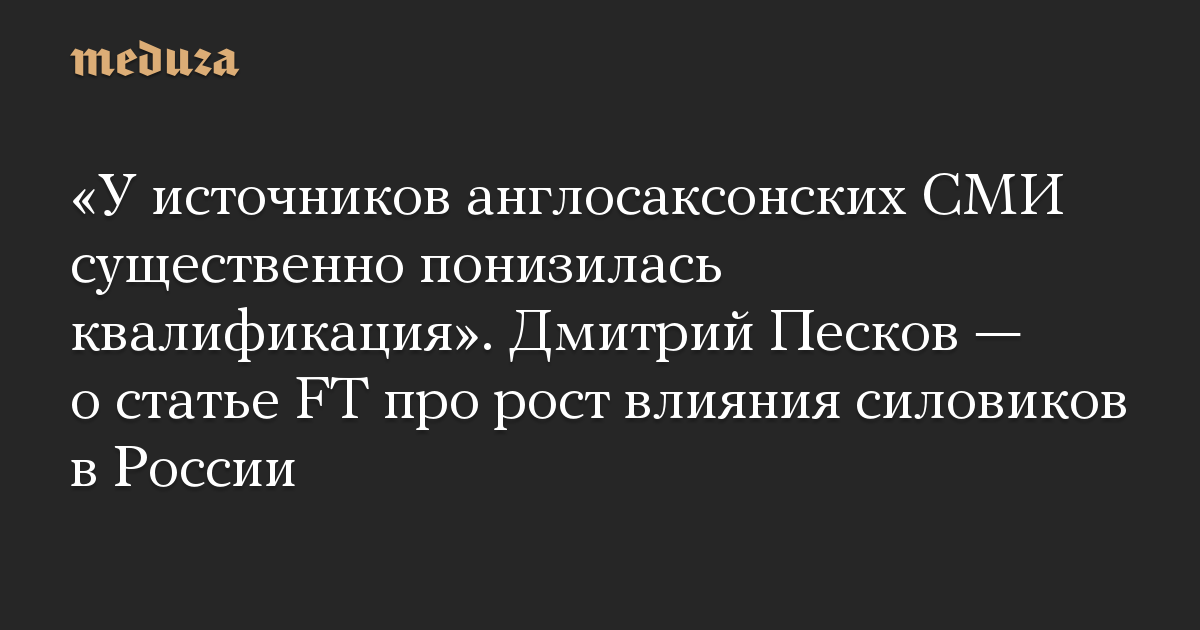 «У источников англосаксонских СМИ существенно понизилась квалификация». Дмитрий Песков — о статье FT про рост влияния силовиков в России