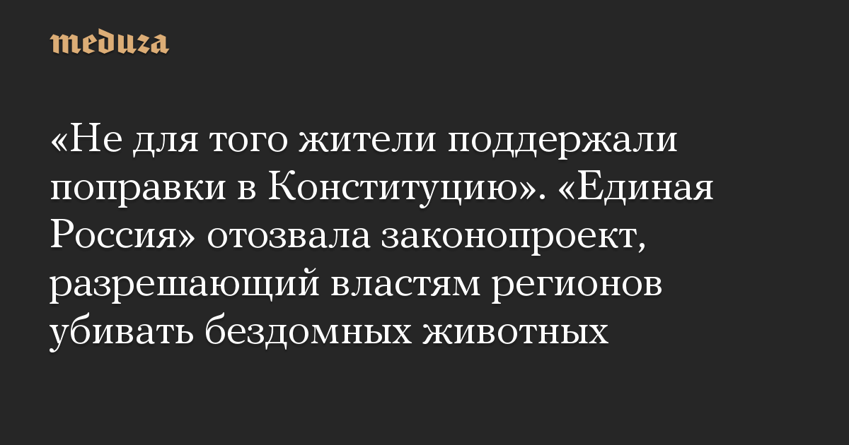 «Не для того жители поддержали поправки в Конституцию». «Единая Россия» отозвала законопроект, разрешающий властям регионов убивать бездомных животных